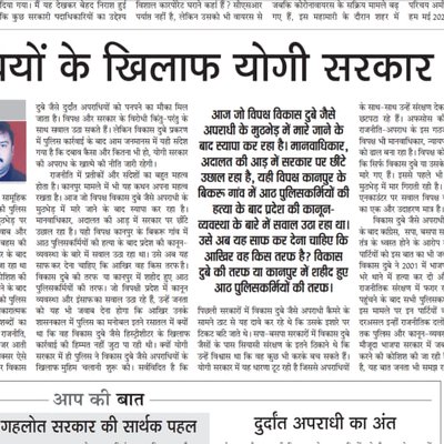 कानपुर प्रकरण में पुलिस की कार्रवाई पर विपक्ष जितना भी हल्ला करे, लेकिन जनता में यह संदेश साफ गया है कि मुख्यमंत्री श्री @myogiadityanath जी के रहते प्रदेश में अपराधियों और उनके संरक्षकों के लिए कोई जगह नहीं है। पढ़ें श्री पंकज श्रीवास्तव जी का यह लेख- https://t.co/ciNmqqm1QTChitra Tripathi