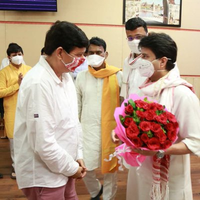 आज विमानतल पर भाजपा सांसद माननीय श्री @JM_Scindia जी का अभिनंदन किया। https://t.co/K7yAhsyKfnअंकित साहू #followback 🤗🤗🤗