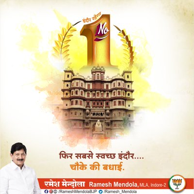 देश के सबसे साफ सुथरे शहर इंदौर के हर शख्स को फिर से बधाई। हम नम्बर वन थे, हमेशा रहेंगे। #Indore #indorerahegano1 https://t.co/kBhKQlVSgKस्वामी रामदेव