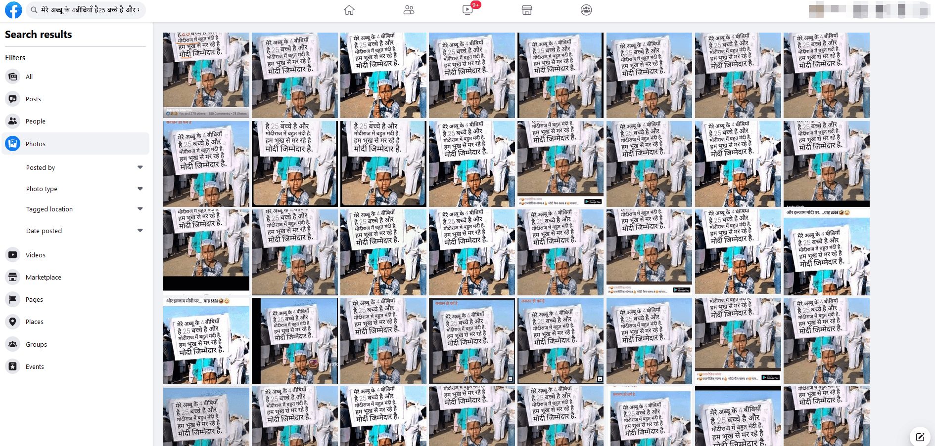 A photo of a Muslim boy carrying a placard is widely being circulated on social media. The placard has a message written in Hindi that reads, "My father has four wives, 25 children and there is a lot of recession under Modi's rule. We are dying of hunger, Modi is responsible for it".