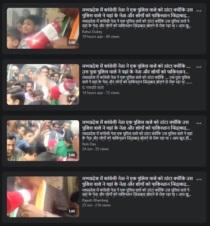A 1:26-minute-long video has gone viral on social media, capturing a man engaged in a heated altercation with a police officer and threatening him. The claim accompanying the video suggests that the incident occurred in Madhya Pradesh. It is alleged that the police officer was threatened by a Congress leader and his supporters when he tried to prevent them from chanting pro-Pak slogans.