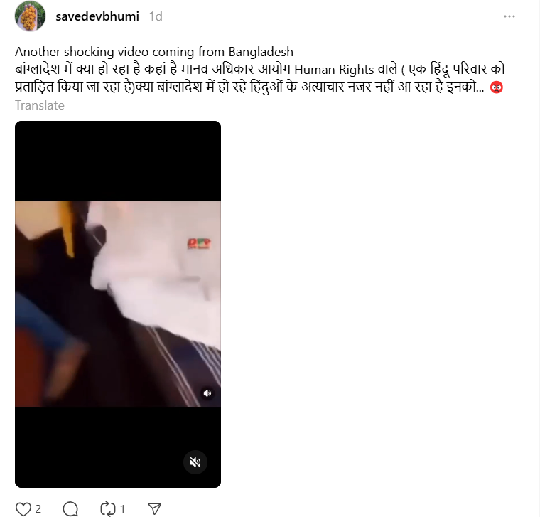 A 20-second clip showing a group of men barging into a room with a semi-naked woman and a man is viral on social media. Towards the end of the clip, a child can be seen crying on the bed while the woman, crying, desperately tries to cover herself up. Some users have claimed that it shows miscreants torturing a Bangladeshi Hindu family while others allege that the video shows a woman being raped in front of her child.