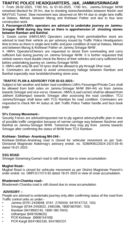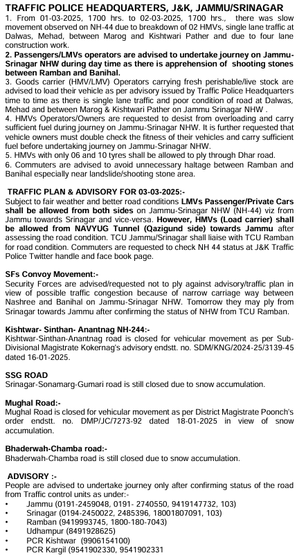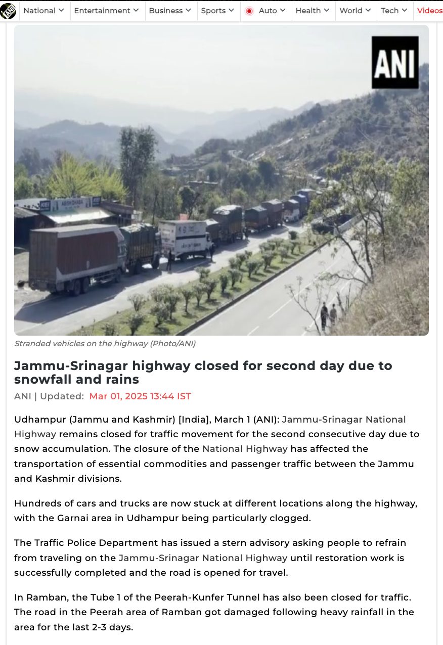 To be sure, we checked for traffic updates in the Ramban area around March 2 and found several advisories shared by the Jammu and Kashmir traffic police's X handle. Since February 27, traffic on the Jammu-Srinagar National Highway saw several disruptions due to adverse weather conditions and landslides. On February 28, the handle even posted that part of a road in Ramban had caved in. The following advisories make it clear that there was some suspension of vehicular movement and a hold-up in traffic between March 1 and 3 due to restoration work and single-lane passage of traffic.