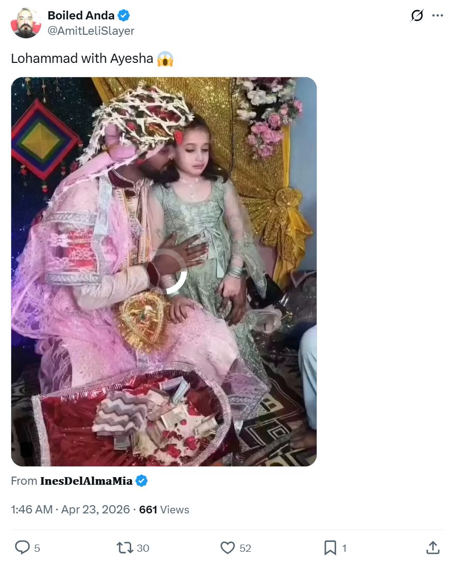 Similarly, an account named InesDelAlmaMia shared the video with a Spanish caption, describing it as “utterly repulsive” and claiming that the young girl’s expression shows she is being robbed of her childhood and innocence. The post further questions why such men “choose young girls instead of marrying adult women,” reinforcing the false and misleading narrative around the clip. (Archive)